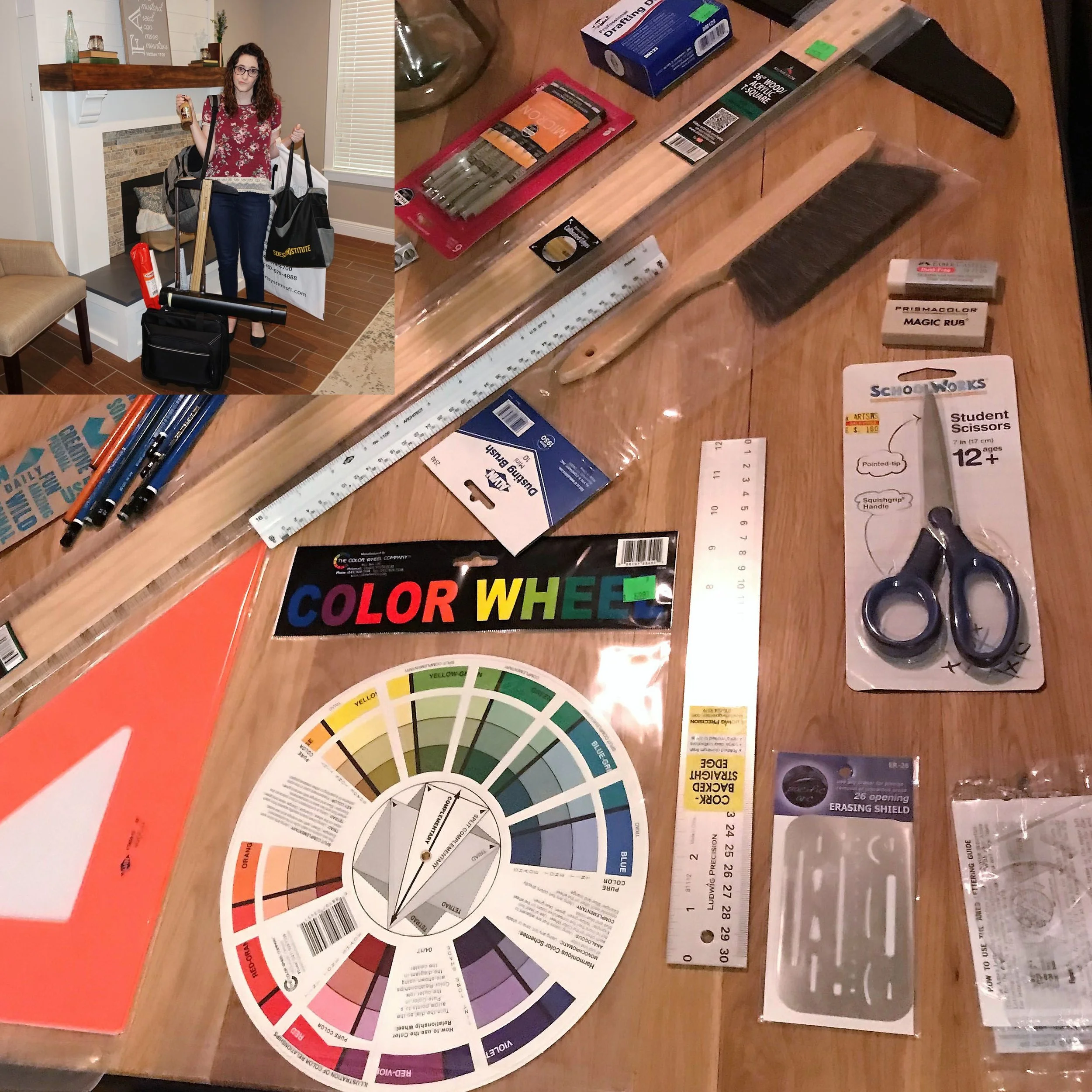 Larger Image: My first haul of school supplies for the design program. To think I did not even know what a T-square was when I started! I recall feeling so lost in the art supply stores trying to find everything on the list - talk about imposter syndrome! It was strong as I navigated the aisles trying to figure out what and where every item was.