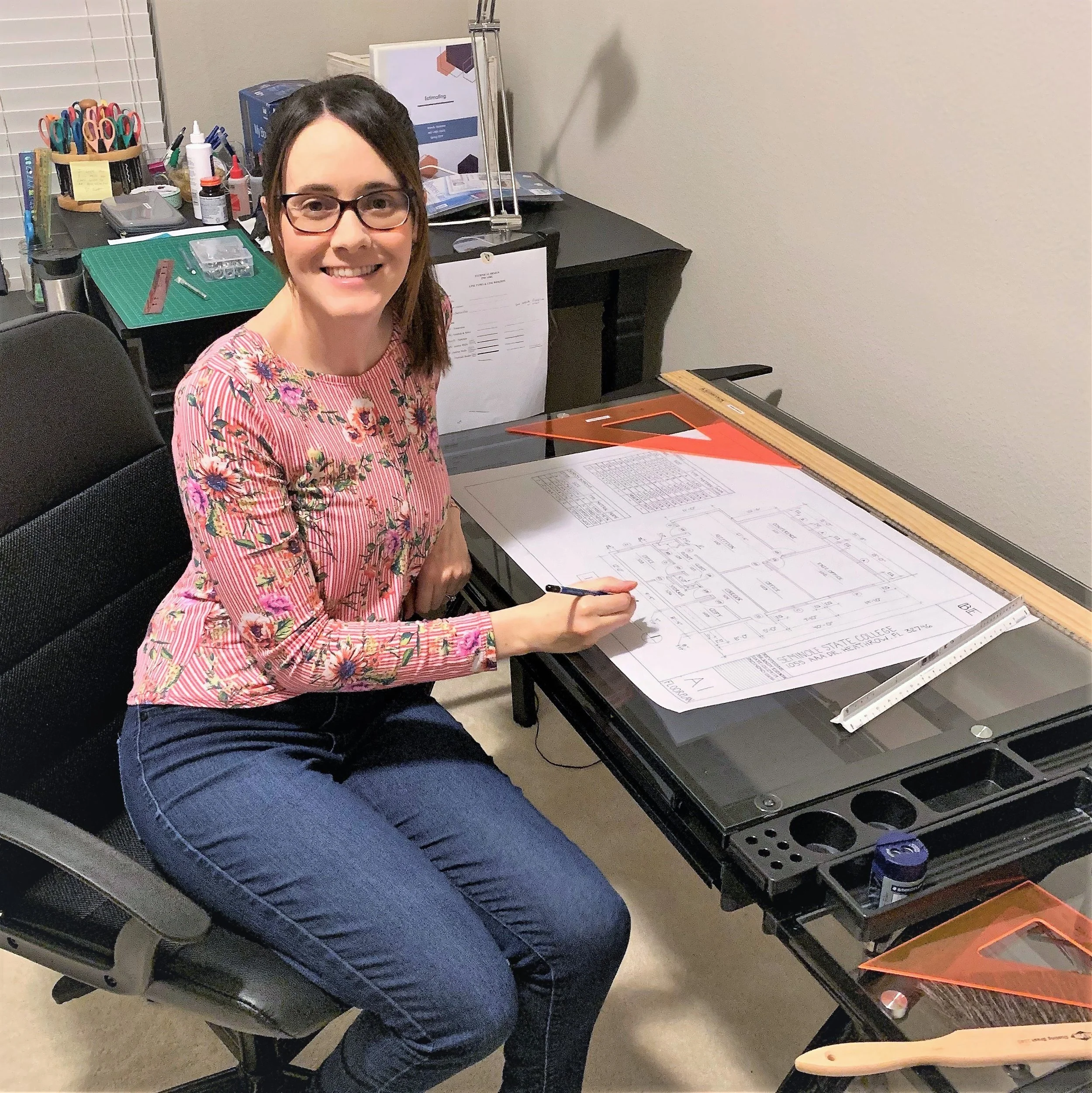 Me sitting at my drafting table, working on space plans and schedules.